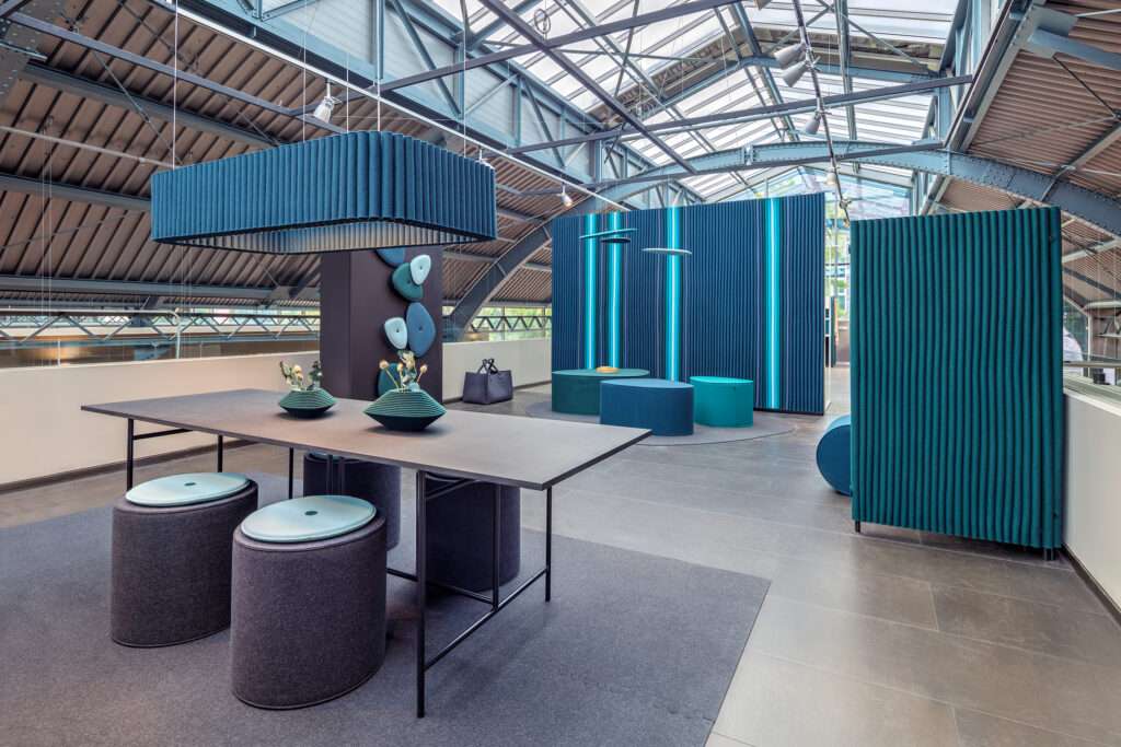 Hey-Sign (Hall 3.1 D02) will be introducing room dividers, ceiling objects, and seating furniture in the new Office Design & Solutions segment. The innovative “Welle” series, characterized by flexibility and adaptability, features natural wool felt for both aesthetic appeal and acoustic benefits.