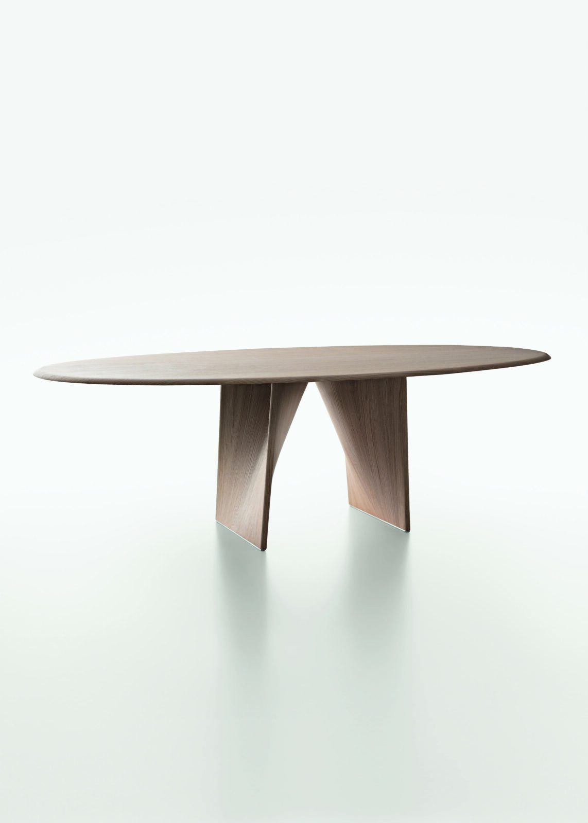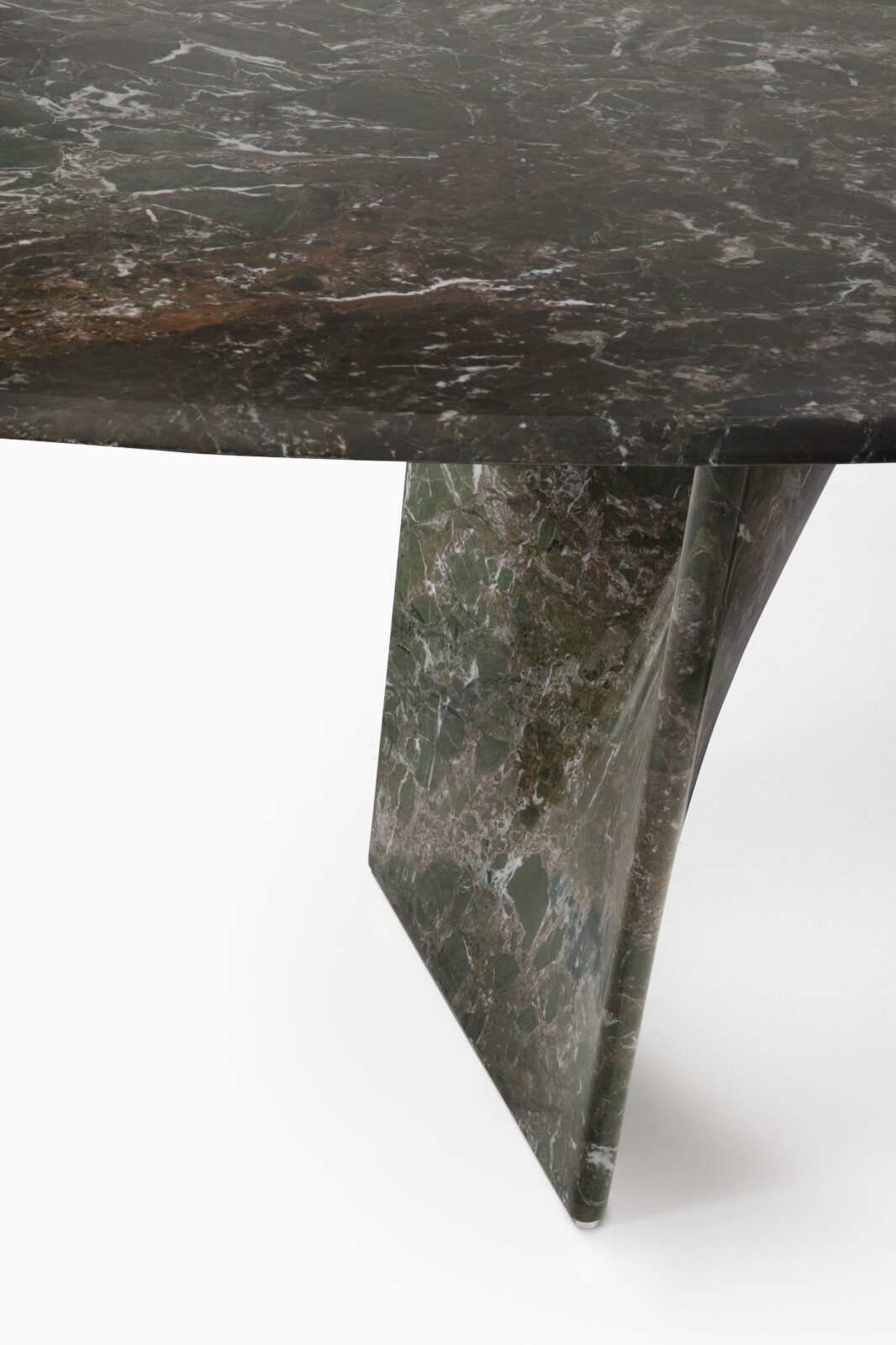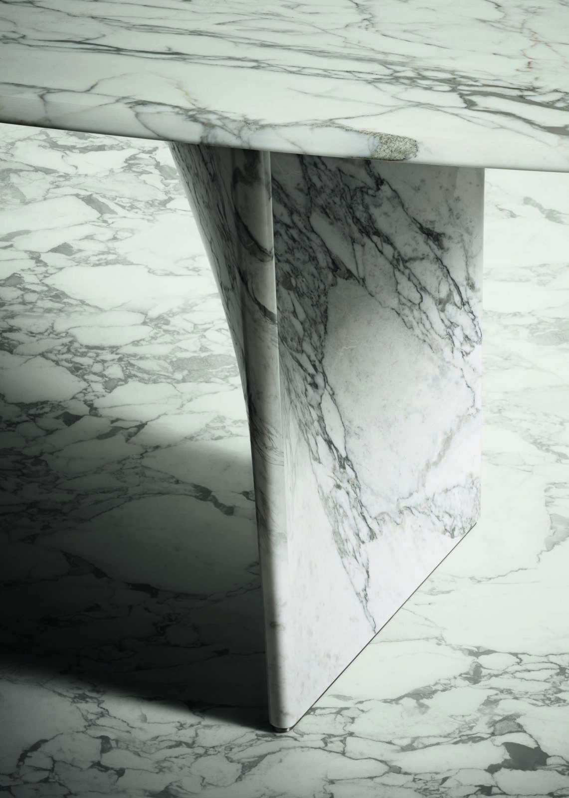 The table’s full visual power is perhaps best seen in the single-material versions. In these models, the veining of marble, the natural grain of wood, or the soft texture of the new Terrae finish gives the table a remarkable expressive quality.
