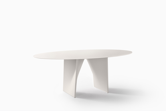 The Lambda table sits at the center of this new collection. It’s a table with flowing, elegant lines that give it a sculptural feeling, balancing a light appearance with very original shapes.