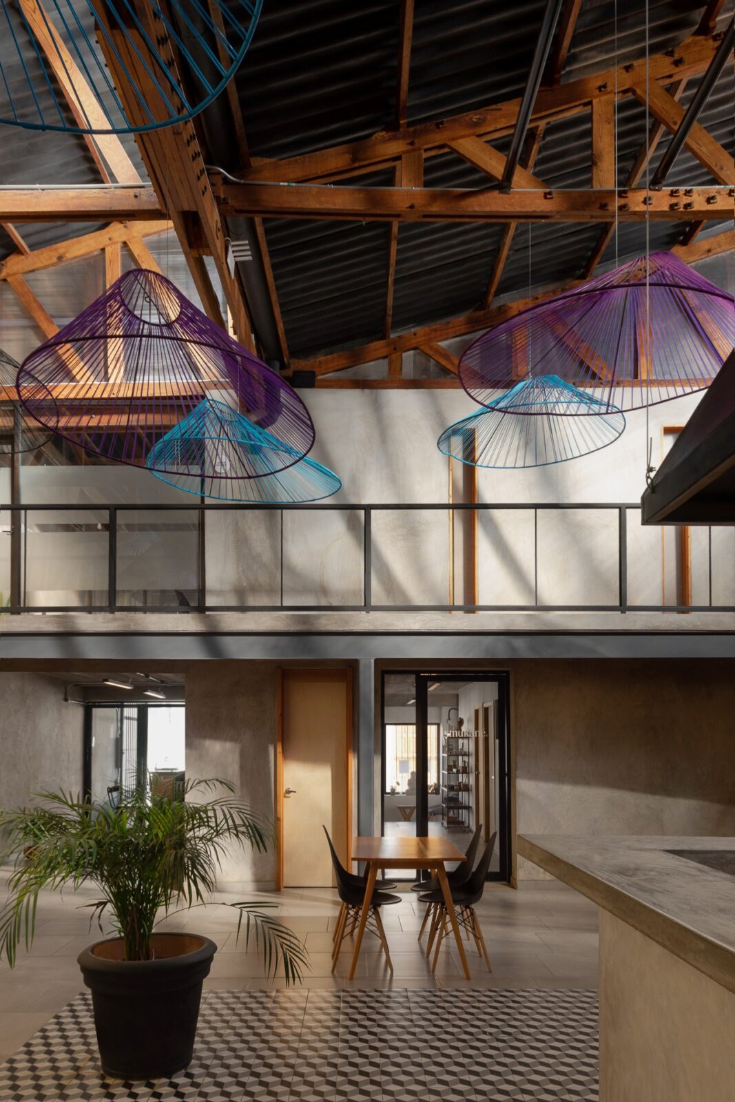 Located within the city’s historic core, the design integrates elements of the original structure, including the wooden beams, which create a perfect balance with the coldness of the polished concrete and the familiarity of exposed brick. By combining the colonial and cosmopolitan aesthetics, IXMUKANÉL reconciles both the building’s complex past with a contemporary context. The four suites and two spa cabins on the ground floor are connected by a double-height space which contains a coworking space, a coffee bar, and a snack zone. Moving on to the upper level, you will encounter an additional four suites as well as an administrative office, and enjoy the panoramic view of the city. These multiple levels correspond to multiple realities that nurture bonds and connections.
