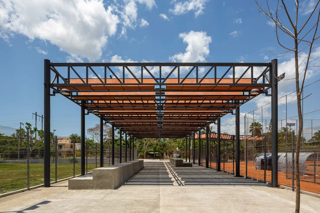 Studio KEN’s proposal consisted of recovering and making this public space more accessible and inclusive. Therefore, they demolished the perimeter fence to create an accessible space with open walkways, accompanied by the vegetation of the site and pedestrian lighting. In addition to this, the design team arranged the courts in such a way that it recovered the openness of the streets. As a result, a sports area was consolidated to the north of the polygon. It consists of a soccer field, a basketball court, and a baseball field. The baseball fields are complemented by a pavilion that houses the facilities of a baseball school called “probéis”.